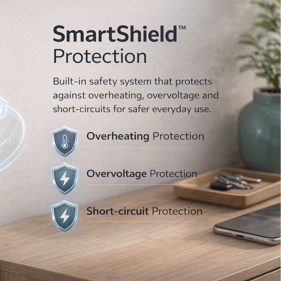 SmartShield garantit une charge stable, sûre et fiable, idéale pour une utilisation quotidienne en toute tranquillité.